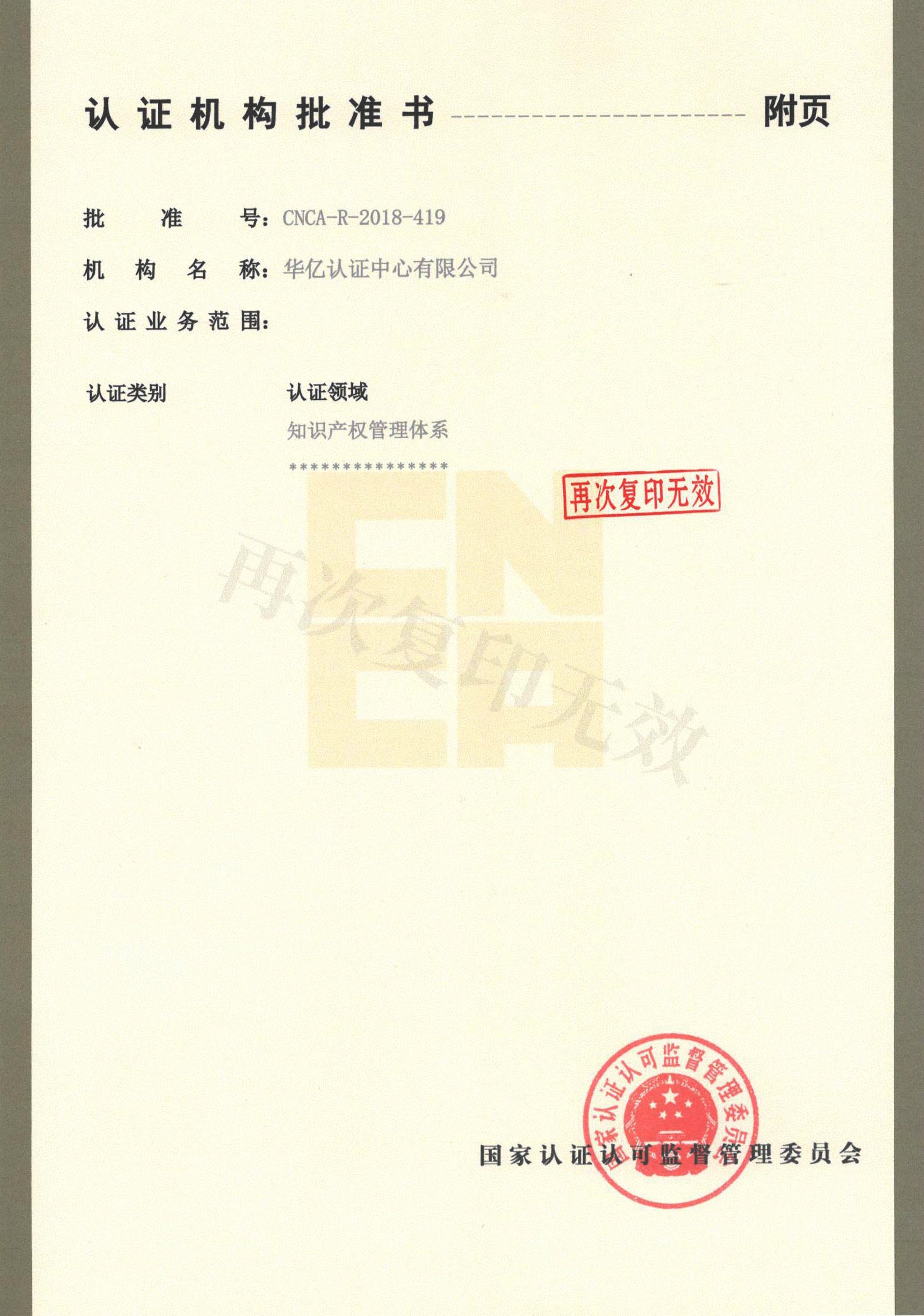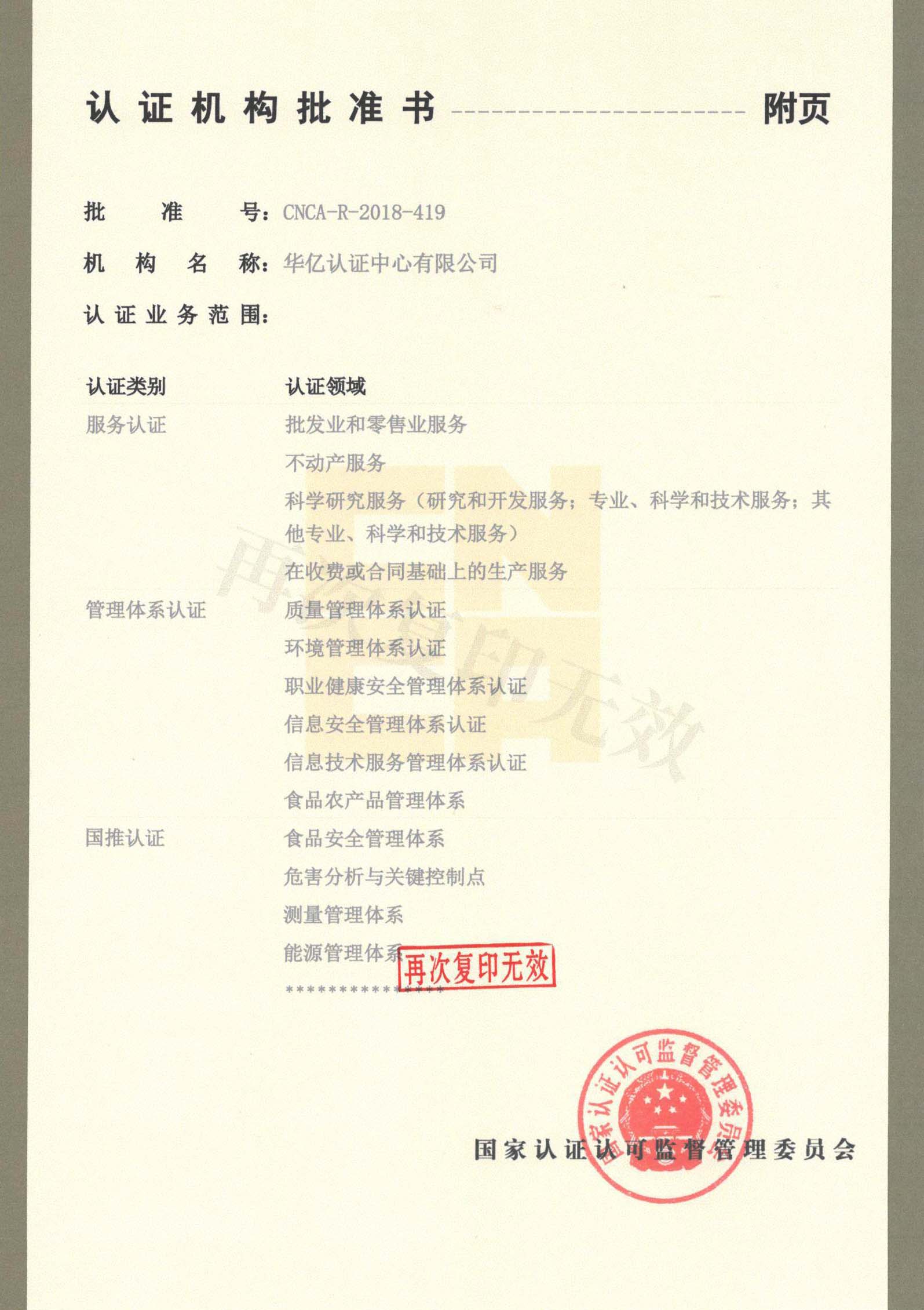 认证机构批准书附件-2