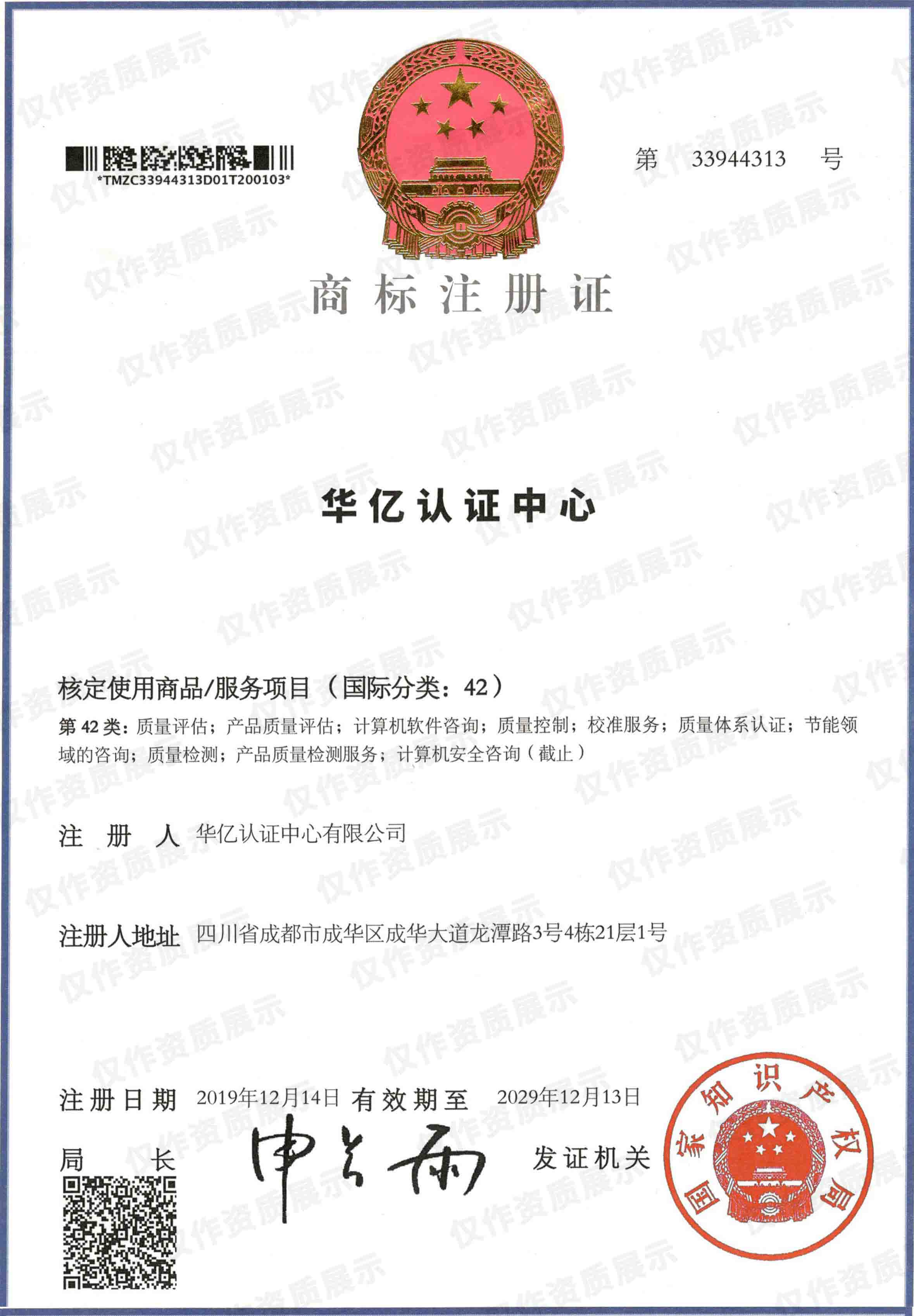 华亿商标注册证