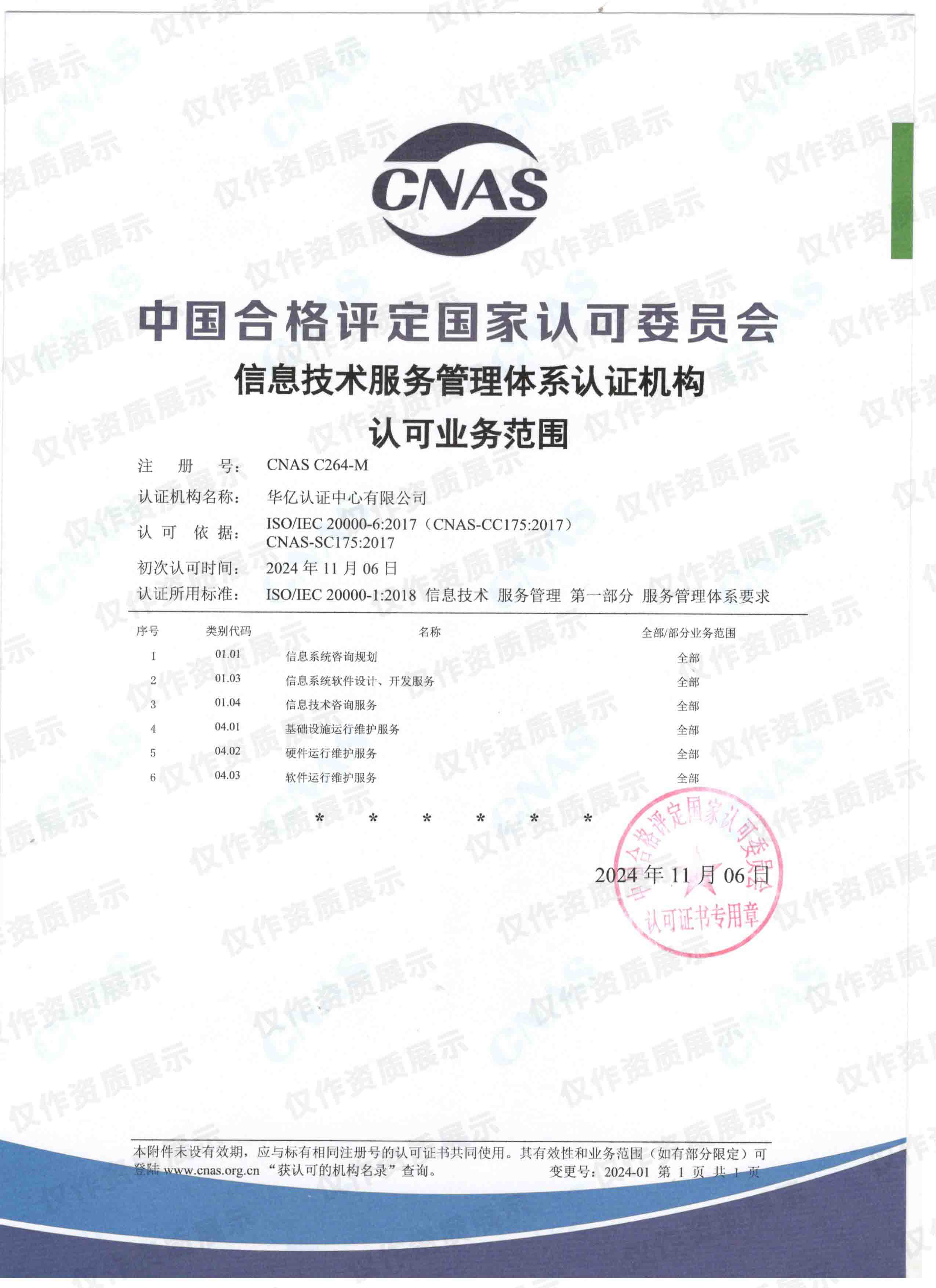 CNAS信息技术服务管理体系认证机构认可业务范围