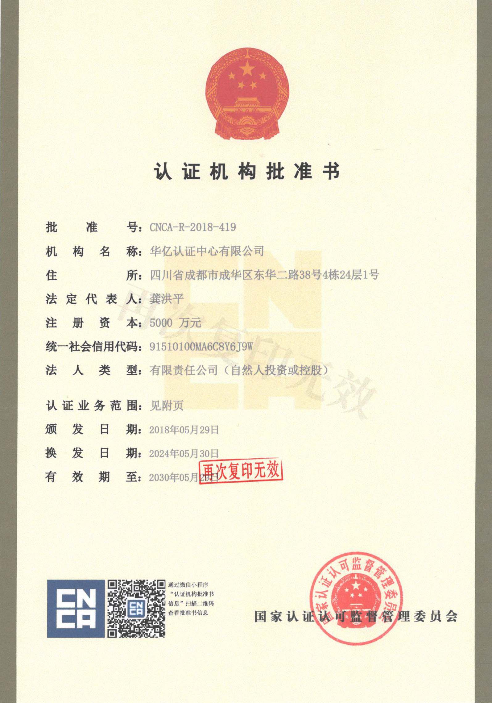 认证机构批准书附件-1